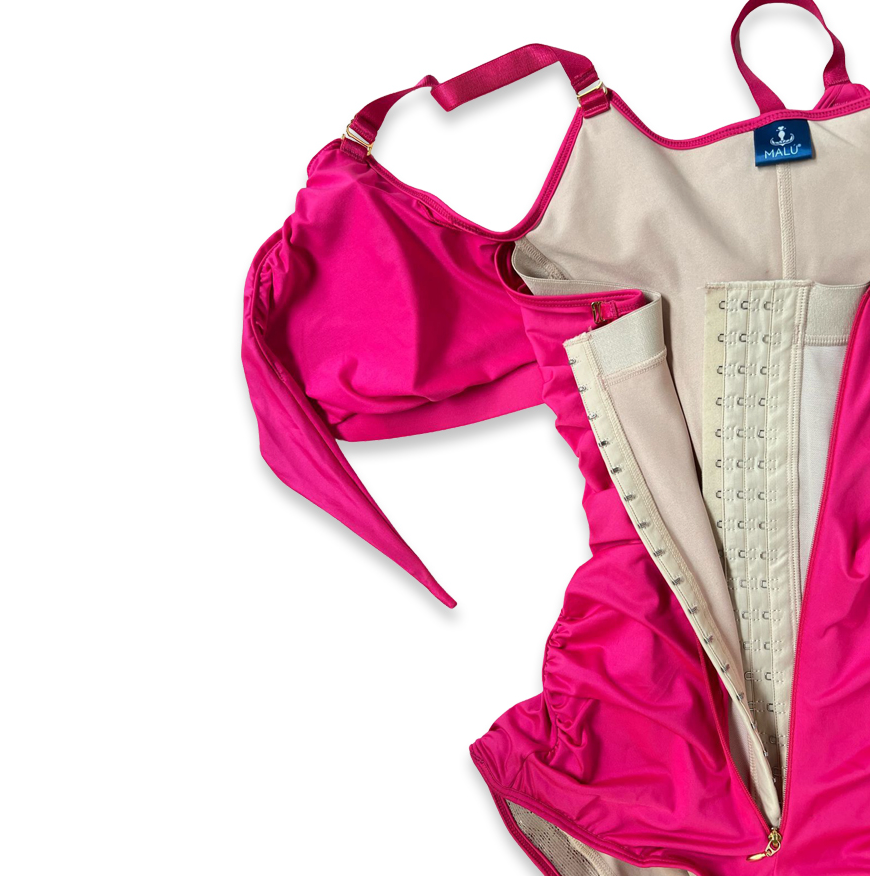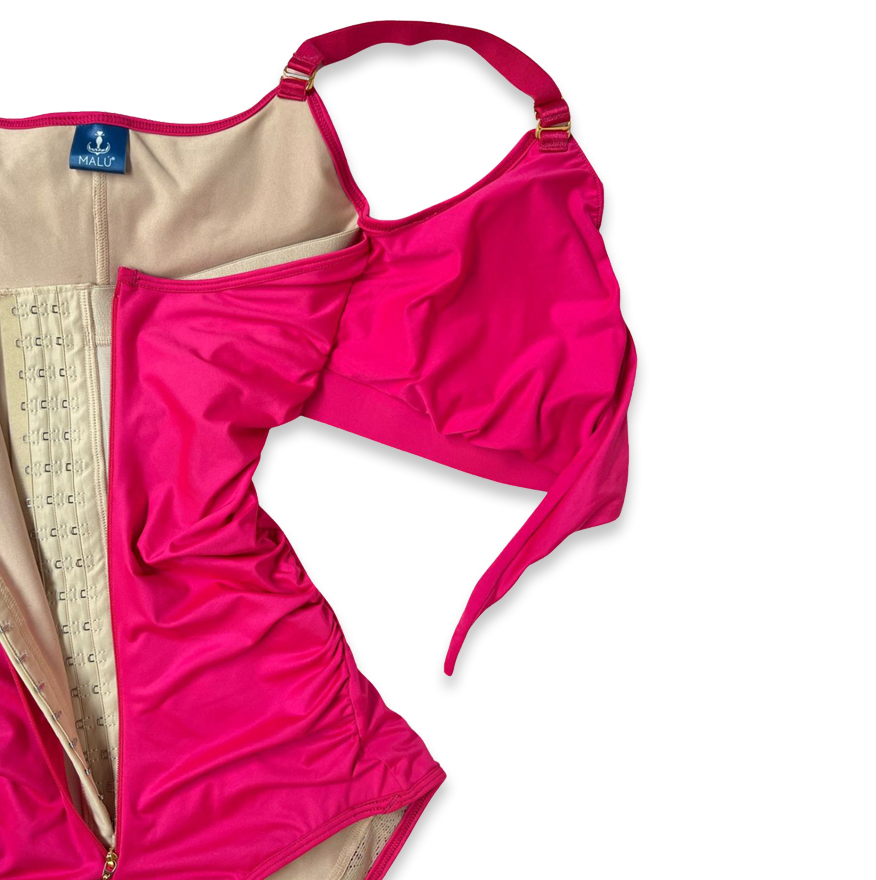 - 3 líneas de broches frontales que te permiten ajustar y moldear a tu medida.