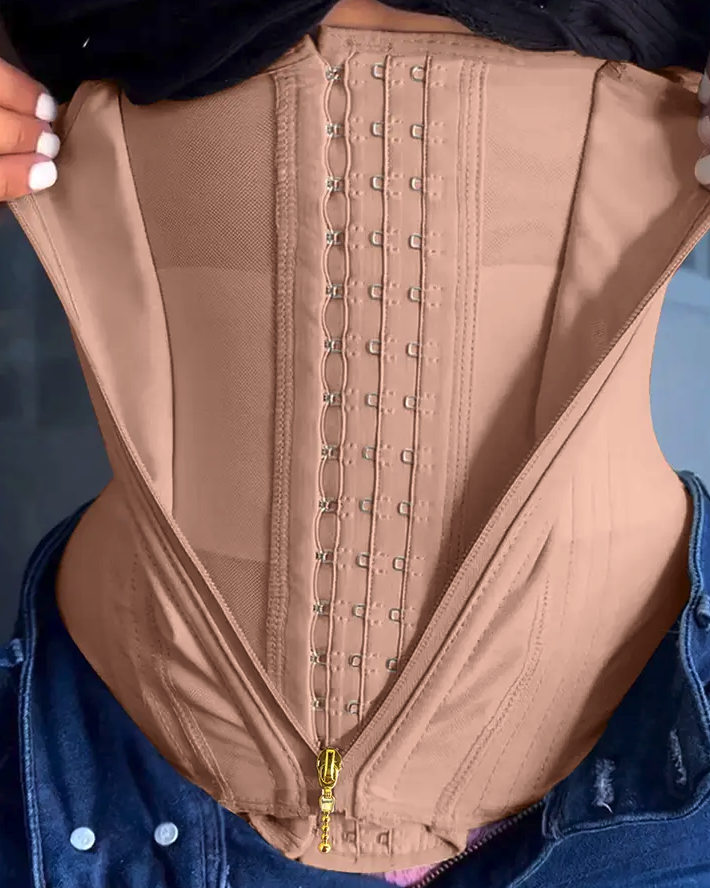 Tela transpirable, ajuste y componentes diseñados para el uso diario, lo que facilita ponérselo y lo hace tan cómodo que ¡podrías no querer quitártelo! El corsé está equipado con varillas de acero que realzan tu figura, reducen tu cintura natural y ayudan a crear la silueta de reloj de arena perfecta.